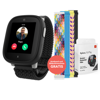 Mit der Xplora X6Play Smartwatch bleibt die ganze Familie in Verbindung. Die clevere Alternative zum Handy für Kinder ist mit einer SIM-Karte ausgestattet, sodass ihr Anrufe tätigen, Nachrichten senden und empfangen und den Live-Standort eures Kindes per GPS abrufen könnt.