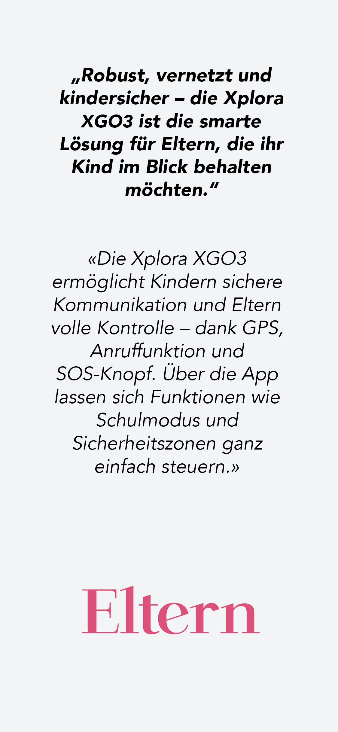 Die Smartwatches von Xplora legen größten Wert auf Sicherheit und Kontrolle und gewährleisten ein geschütztes Nutzungserlebnis, indem sie keinen Zugang zum Internet bieten.